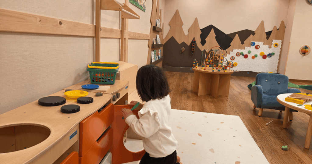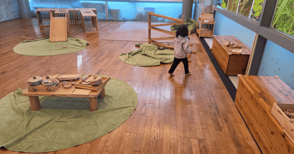 ポポラには木育ルームがあって、そこには木でできたおもちゃもたくさんあり、楽しく遊べました。