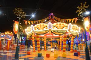 室内での乗り物や遊び場がありましたが、これは雨が降った時の手段だ、ということで、外に出て、メリーゴーランドの「ガウディカルーセル」へ。